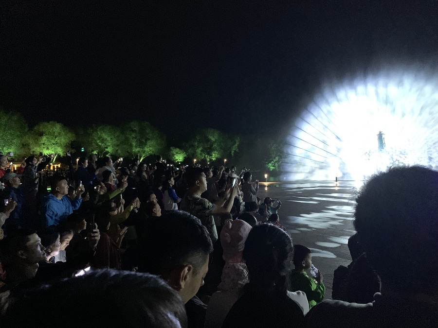 為確保首秀的效果,自6月25日起信達電通主創(chuàng)團隊多次夜間試演調(diào)試。現(xiàn)場吸引了眾多人潮和多方媒體的廣泛關(guān)注,守望都市、長春播報、新文化報等媒體相繼進行報道。信達電通設(shè)計總監(jiān)孫彥飛先生在試演現(xiàn)場接受采訪,向各大媒體解答水景秀的特色設(shè)計理念和技術(shù)實施問題。