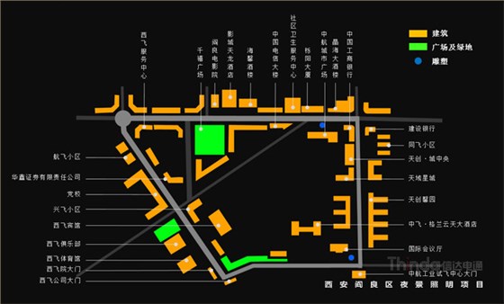閻良區位于西安東北部,不但是一座底蘊深厚的歷史古城,還是一座資源豐富的航空名城,區內有中航工業試飛中心、第一飛機設計研究院、西飛公司、中國飛機強度研究所等大型航空企事業單位,聚集了1/3以上的航空資源。閻良已成為中國唯一、亞洲最大的六位一體的航空工業基地,被譽為“中國航空城”。本案亮化設計范圍為閻良區人民東路、西飛大道、試飛院路、公園南街等四條道路兩側的30余棟建筑及廣場、景觀帶。