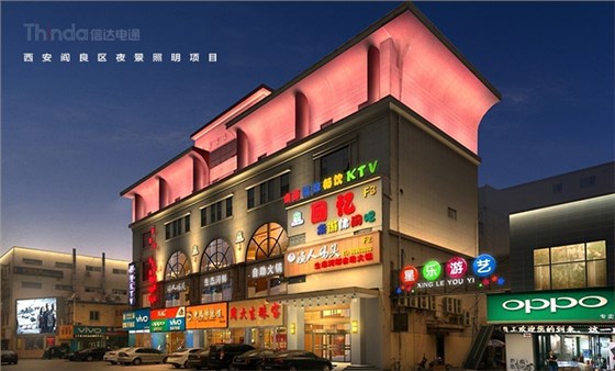 閻良區亮化示范街部分樓宇、景觀亮化設計效果圖與亮化實施后的實景賞析: