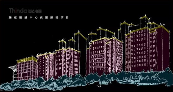 信達電通對保億隆基中心和風景御園等周圍建筑樓體進行亮度規劃,樓體頂部采用一級照明,突出建筑頂部結構,營造天際線的效果。