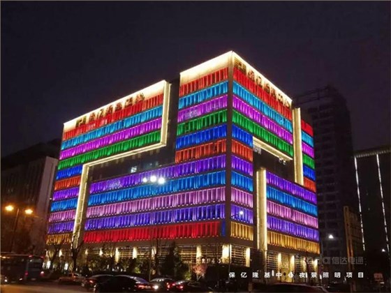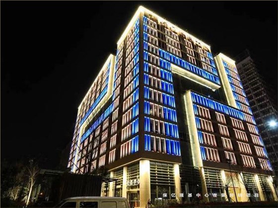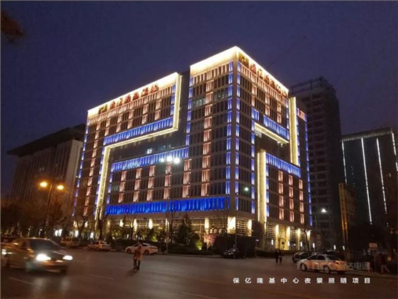 保億隆基中心位置特殊,屬于行政辦公范圍,因此建筑應符合市政類建筑照明要求,以黃、白光為主,體現莊重之感。信達科技設計組夜間多次調試燈光,以達到設計規劃預期效果。