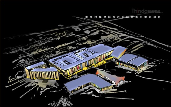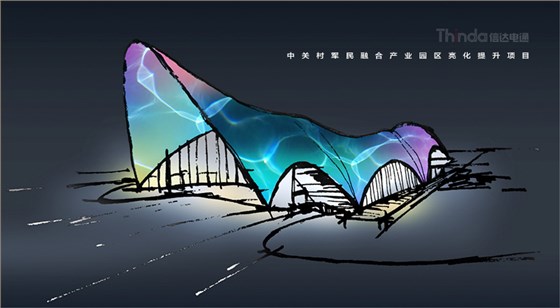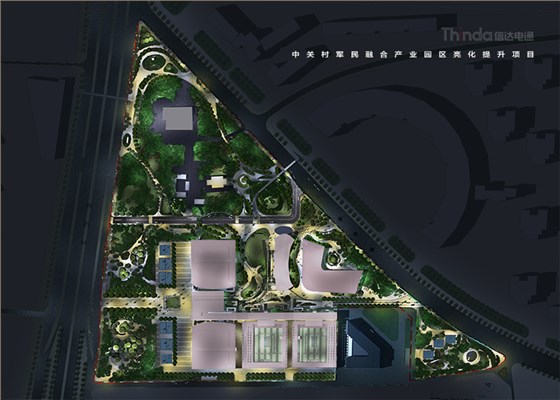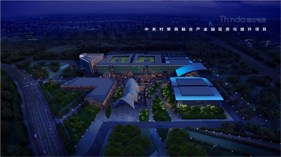 中關村軍民融合產業(yè)園區(qū)的亮化設計主要以建筑燈光為主體設計方向,用燈光的形式突出建筑結構特點,突出時尚、創(chuàng)新、科技、新潮的融合產業(yè)園。園區(qū)建筑結構整體簡潔、大氣,信達電通利用光影效果及景觀元素,打造東西、南北軸向的建筑縱身層次,整體以各種幾何形體組合而成,燈光在設計的同時尊重建筑本身的理念,優(yōu)化夜景氛圍,通過塊與面的結合,塑造一個大氣魄、大追求的文化產業(yè)新品牌。