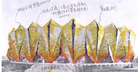 信達電通以“照明充分尊重建筑本身的特點,豎向的亮線使建筑特點在夜景得以重現(xiàn)強化”為照明理念,對博物館和附近的美術(shù)館進行統(tǒng)一場館照明設(shè)計。在規(guī)劃設(shè)計中,采用環(huán)境光把握光效的明暗色彩節(jié)奏。在燈具選用的把控中,采用動態(tài)線條燈,突出建筑外立面的效果。在效果實施中,全程落實設(shè)計中的照明要點和動態(tài)效果,實現(xiàn)設(shè)計方案的呈現(xiàn)。