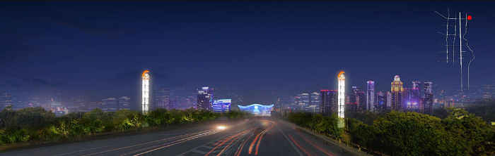 高新南區(qū)東門戶,以建筑群落和構(gòu)筑物為夜景空間表現(xiàn)基礎(chǔ),突出門戶區(qū)域的夜景標(biāo)識(shí)。