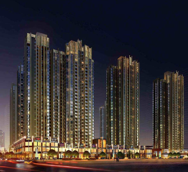 居住區(qū)以表現(xiàn)城市天際線為主,適當(dāng)做立面的夜景修飾,建筑底部臨街尺度做相對(duì)重點(diǎn)表達(dá),突出住宅的基本層次。