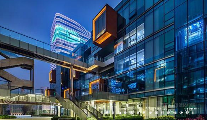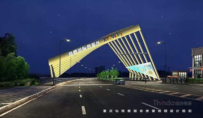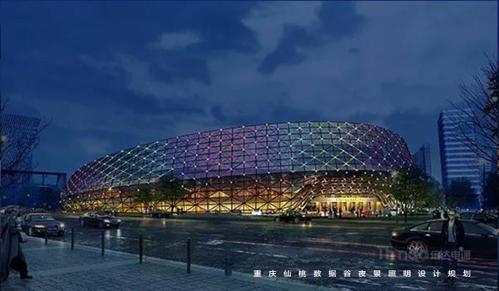 信達電通以梳理景觀層次,打造宜觀、宜居的夜環境;綜合國家照明標準與仙桃國際數據谷自身特性,合理規劃功能照明;在防控光污染、照明控制技術、照明手法三個層面體現“仙桃國際數據谷”,打造智慧城市、低碳交通、健康宜居環境、科技智慧支撐平臺;營造優美的重慶夜景觀城市地標為照明目標。